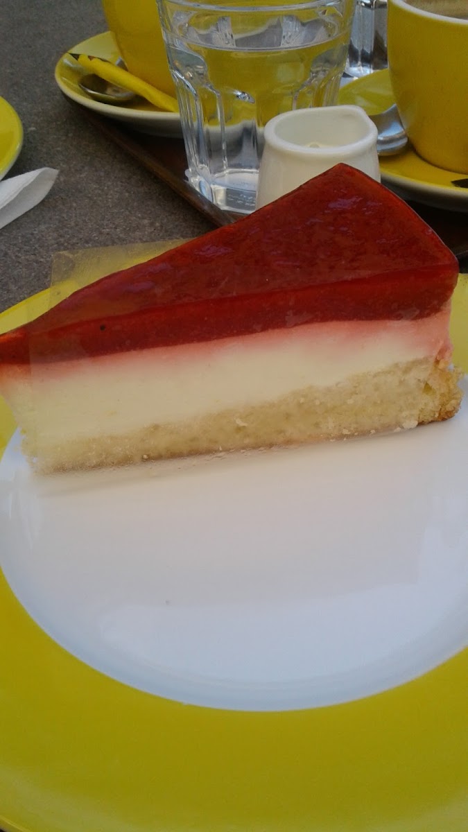 Came here with my family at lunch time, ordered strawberry curd cheese cake (left), baked cheesecake (middle), cheesecake with peaches (right), a hot chocolate and a pizza italiano (not in picture) Important: this place doesn't take credit card for payment, be prepared with cash The cakes were delightful, the hot chocolate was rich and delicious, and the pizza was amazing. The service was great, we talked about the menu options to understand what we want, anad afterwarda chatted about our trip, we even got a few recommedations on places to visit next. Overall this place was great, I would love to come again.